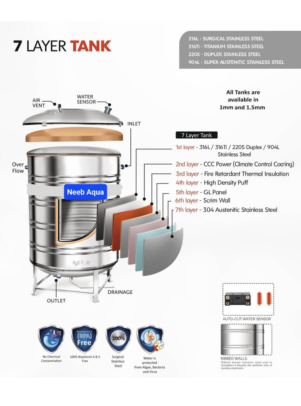 - The inner pipe is stainless steel 304 grade and the outer pipe is stainless steel 304 grade to block the magnetics field.